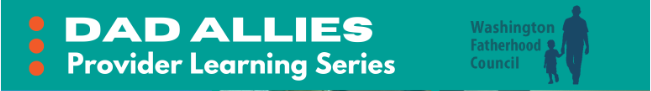 The Dad Allies Initiative established a series of responsive community, provider, and dad focused events to build Washington state’s father-friendly capacity to support dads to become the fathers their children and families need them to be. These knowledge and skill building sessions with state and national presenters are held to strengthen our provider network to effectively engage and support fathers and father-figures.